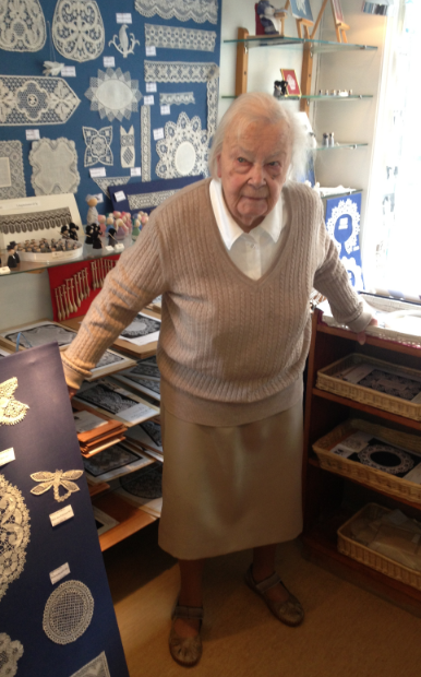 Butiken är den äldsta spetsaffären i sitt slag. Verksamheten grundades 1920 av Elsa Peterson och idag drivs den av hennes dotterdotter Karin Landtblom.
