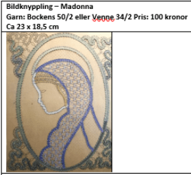 På sidan https://elsapetersonsspetsaffar.com/spanska-monster/ hittar du lite annat julinspirerat. T.ex. En KRUBBA, en MADONNA, en ÄNGEL, ROSETT TILL EN FIN JULKLAPP, eller kanske knyppla en tavla till någon som tycker om HUNDAR eller KATTER. Du hittar fler motiv på länken till dessa mönster. Längst ner finns ett vackert träd!