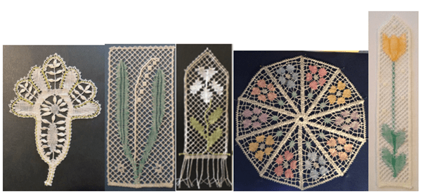 Blommor finns det gott om – och det är något man längtar till nu när våren snart är här. För att fira att vi går mot ljusare tider gäller att du får 15 % rabatt på alla mönster med blommor. I denna bild ser du från vänster: Klosterliljan motiv, bokmärket Konvalj, bokmärket Orkidé, infällningen Viol (här i denna bild 10 stycken monterade som en tavla) samt bokmärket Tulpan. Går du in på hemsidan hittar du massor av Rosor, Sippor, Kungslilja, Almas blomma och många fler!