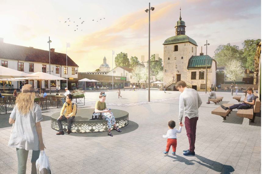 Nu är torget färdigt. Alla restauranger har fått uteserveringar. Det var mycket folk både på Rådhustorget och på Storgatan. Slutet gott allting gott. Hoppas att kommunen går vidare och ordnar till även Stora torget som i dagsläget ser lite mer ”splittrat” ut. Bakkanten med blommor, bänkar och den lilla statyn är dock fin. Det kanske blir nästa projekt. Återkommer med bilder från spetsmuseét i ett kommande inlägg. //Karin Landtblom