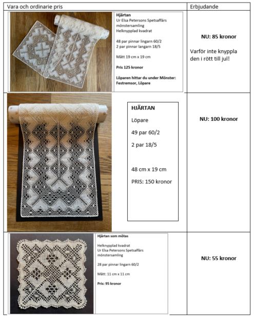 Hej! Jag kommer INTE att delta i årets Sy- och hantverksfestival här i Stockholm den 28-30 oktober 2022. Det är svårt att få till detta i kombination med mitt ”riktiga” jobb. Tiden räcker helt enkelt inte till! Därför gör jag som tidigare och lägger upp några erbjudanden här på hemsidan. Erbjudandena gäller från och med denna publicering och fram till och med 1 november 2022. Erbjudandena gäller så länge lagret räcker och går inte att kombiera med andra erbjudanden.