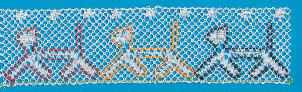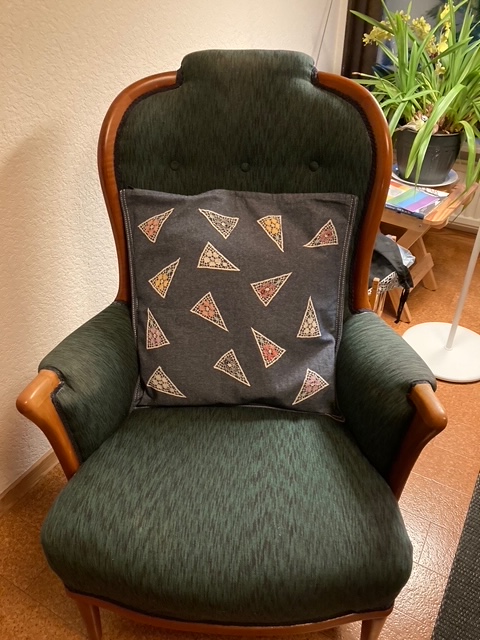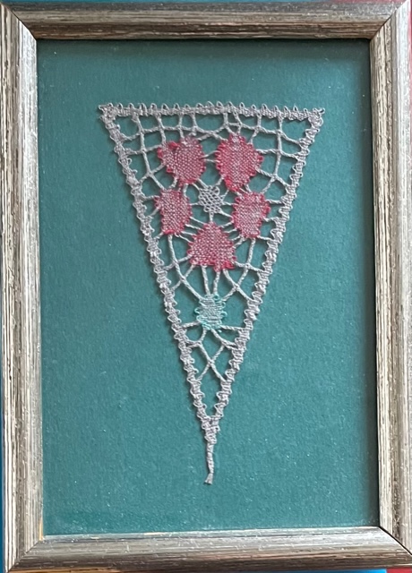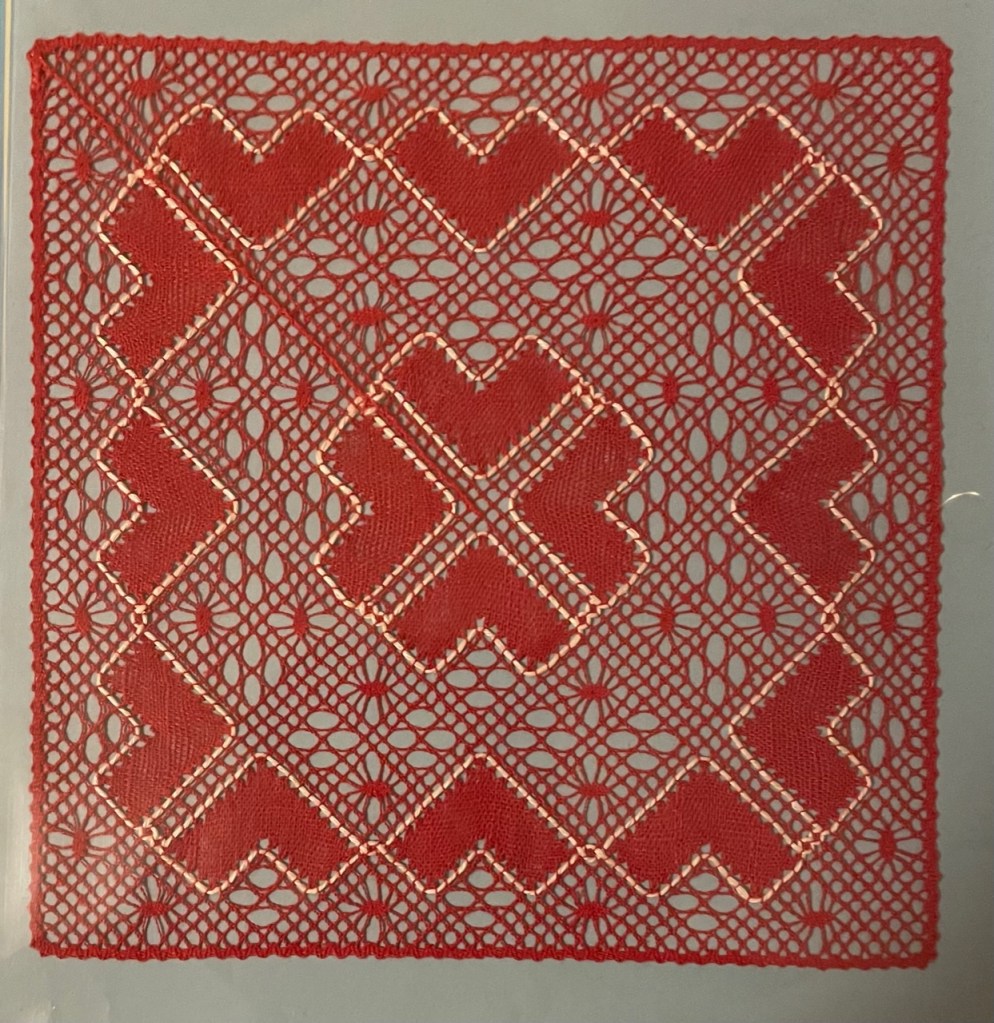 Ett annat mönster som från början var en infällning är också användbar. Mönstret heter Viol. För fällde man ofta in spets i allt från kuddar, gardiner, kläder, underkläder osv. Här nedan ser du hur Kerstin Olsson dekorerat en kudde med denna infällning. Snyggt!