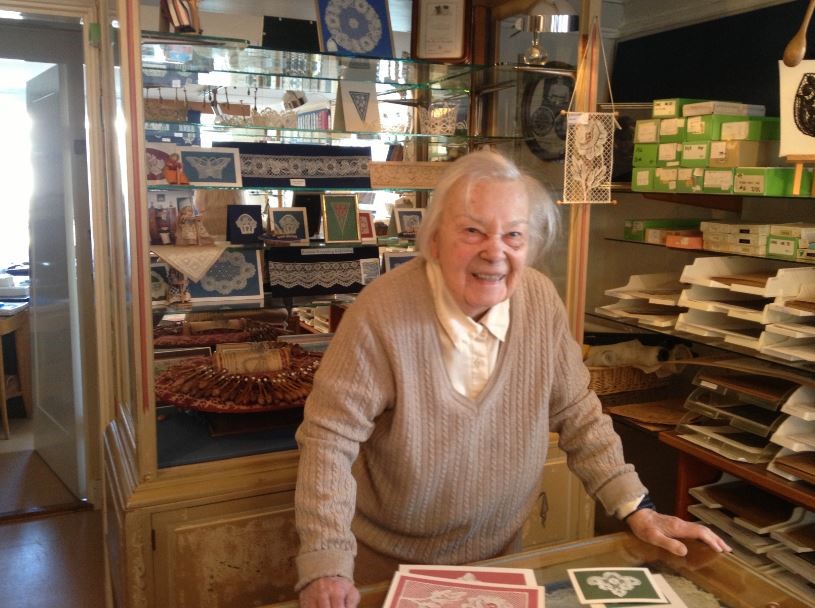 Mamma föddes på Skänningegatan 11 i Vadstena den 6 oktober 1923. Efter gymnasiet var hon ute på äventyr. Lite om det kan du läsa på https://elsapetersonsspetsaffar.com/gunnel-landtblom/ 1969 kom hon tillbaka till Vadstena lagom för att ta över affären efter mormor 1971. Mormor Elsa var då 81 och kände att det var dags att dra sig tillbaka :-). Mamma höll igång butiken fram till januari 2016. Då var hon 92 år!