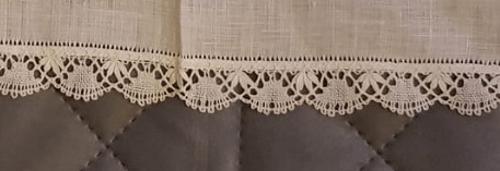På Facebook skrev jag att jag inte tror att spetsen har svenskt ursprung. Anledningen till detta är bland annat att: Spetsar av det här slaget utgör en del av de spetsar som hör till det vi kallar för Vadstenaknyppling. Men de flesta av dessa spetsar har sitt ursprung från andra länder även om vissa mönster bearbetats och kan ha fått specifika drag. Tack vare detta kan spetsar identifieras som spetsar som varit mer eller mindre vanligt förekommande på en viss plats och är platsen Vadstena så kallar vi dessa för Vadstenaspetsar. Jag har genom min uppväxt i en spetsaffär erhållit både erfarenheter av, och kunskaper om Vadstenamönster. Självklart känner jag inte igen alla mönster. Jag har sett grupperingar av mandlar i andra mönster. Men just detta mönster har jag aldrig sett vare sig knypplat eller på bild. Så, med dessa utgångspunkter påstår jag att mönstret inte har sitt ursprung från Sverige. MEN du kanske kan övertyga mig om att jag har fel? Om det är någon som har en bild av spetsen och kanske en historia till spetsen så får ni gärna skicka ett mail till mig på följande mailadress: elsapeterson.spetsar@gmail.com
