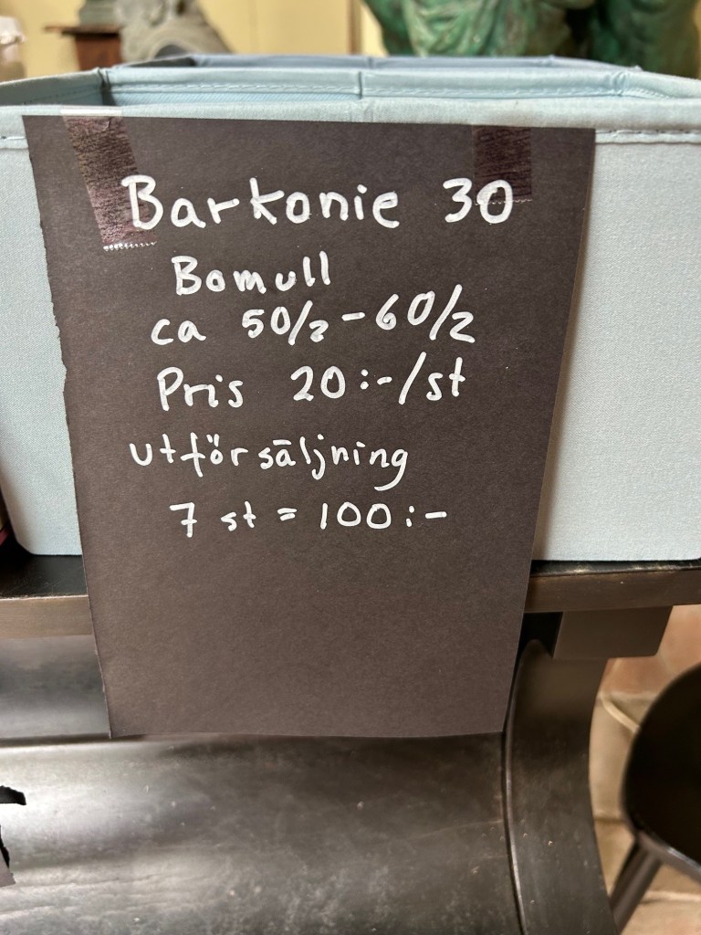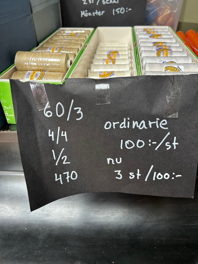 Hej. Det är några garnsorter som jag inte längre kommer att saluföra. Därför hade jag rea på dessa under mina dagar i Vadstena. Men det är kvar lite av varje. Det finns inte kvar av alla färger naturligtvis. Men det är bara att maila och fråga så reder vi ut det. Närmaste dagarna packar jag upp allt som jag hade med mig och sedan ska jag till Vadstena igen för en föreläsning på slottet den 3 juli. Veckan efter det kommer jag ha tid att posta beställningar, både de jag fått tidigare och de som kommer in nu under veckan. Färgerna ni ser i lådorna överensstämmer inte med vad jag har kvar eftersom jag sålt av garnet sedan bilderna togs.