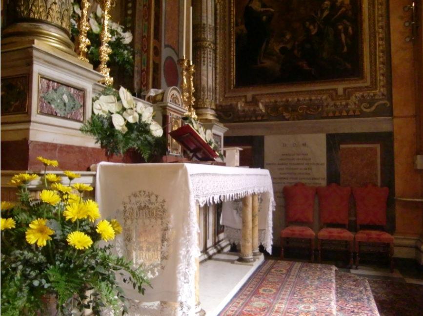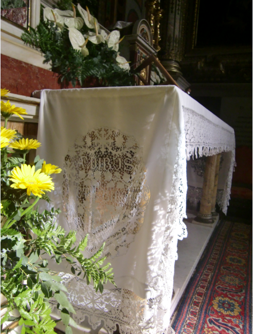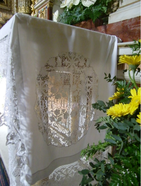 Hon skulle, hör och häpna, vara i Rom den 7 oktober. Tillsammans med sin väninna Giovanna var de i Birgittasystrarnas kyrka just denna dag och skickade sedan foton till mig. Nunnorna visade dem att spetsen var lite trasig på några ställen och genom Giovanna har nunnorna nu fått kontakt med en person som skulle kunna laga spetsen. Om jag får mer information om spetsen, så lägger jag ut det här på hemsidan.