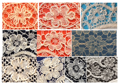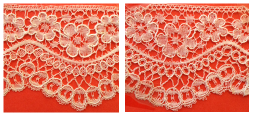 Även i denna spets återfinner vi flera motiv från ovan visade mönster.