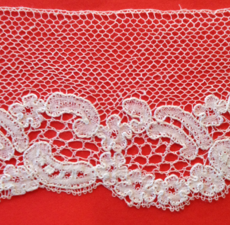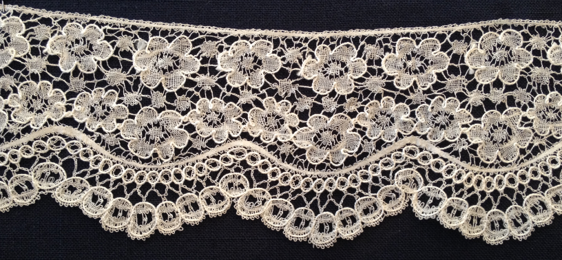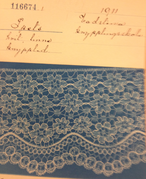Den här spetsen hamnade på Nordiska museet 1911, men mönstret är ett 1800-talsmönster.