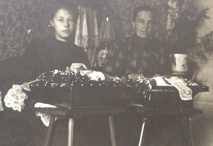 På fotot ser vi Elsa Petersons svägerska Ruth och svärmor Emma. Emma har en Blåsippa på gång på sin dyna.
