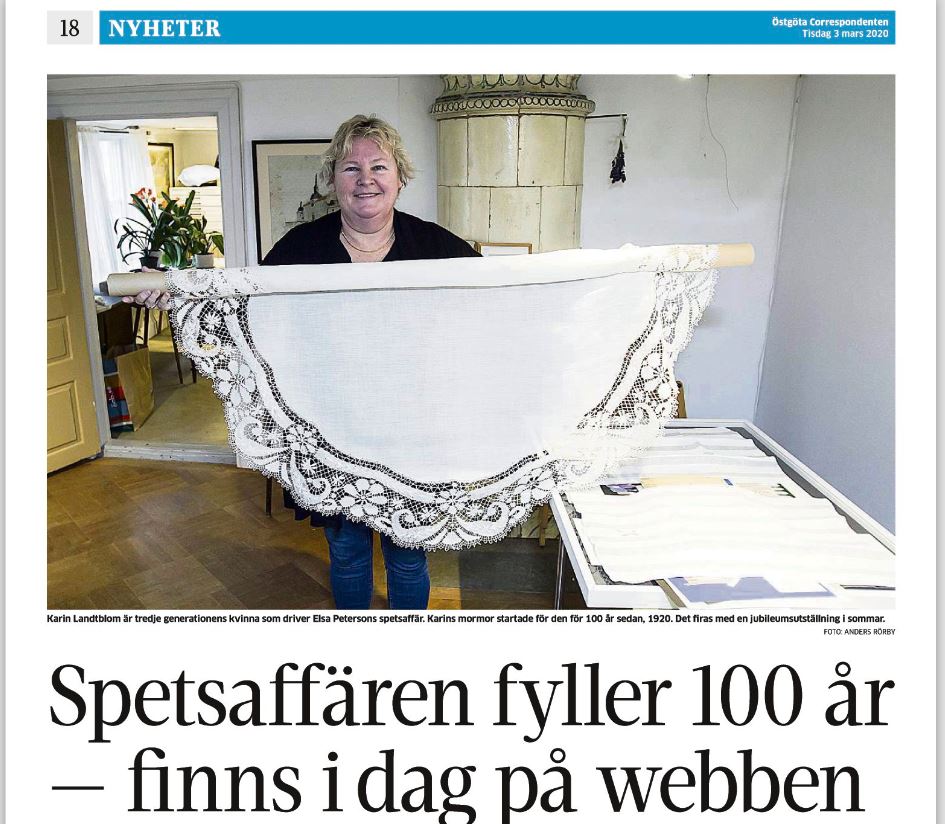 Butiken är den äldsta spetsaffären i sitt slag. Verksamheten grundades 1920 av Elsa Peterson och idag drivs den av hennes dotterdotter Karin Landtblom.