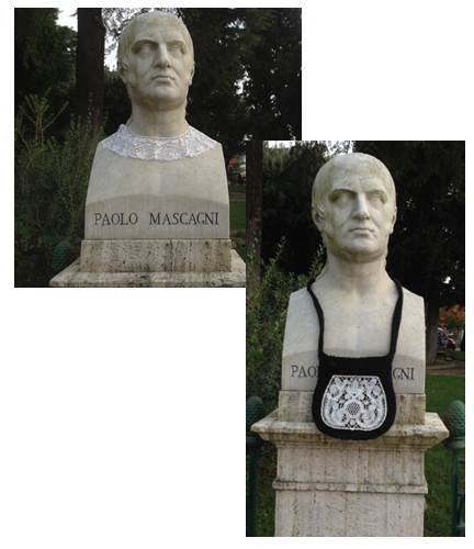 Vi hittade honom i Villa Borghese och på ett spöklikt sätt bytte han från krage till väska, utan att säga ett ord. Man blir ju lite nyfiken på vem han var och tack vare Google fick vi veta att han levde 1755 – 1815 och var professor i anatomi vid universitetet i Pisa.