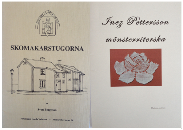 Vill du läsa mer om Inez Pettersson eller om skomakarstugorna rekommenderar vi Föreningen Gamla Vadstenas småskrift nr 31 sammanställd av Sven Bergman 1982, eller Föreningen Spetsmuseet i Vadstena, småskriftserien nr 3 Inez Pettersson mönsterriterska skriven av Marianne Andersson 2012. Den sistnämnda finns att beställa genom affären och kostar 45 kronor. Det finns också en artikel om Inez på Kulturarv Östergötland, du hittar dit via följande länk: http://www.kulturarvostergotland.se/Article.aspx?m=332518&a=335281