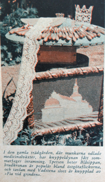 Ett av mönstren ritades och knypplades till Skänningeutställningen 1929.