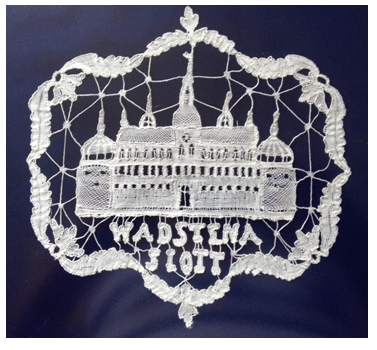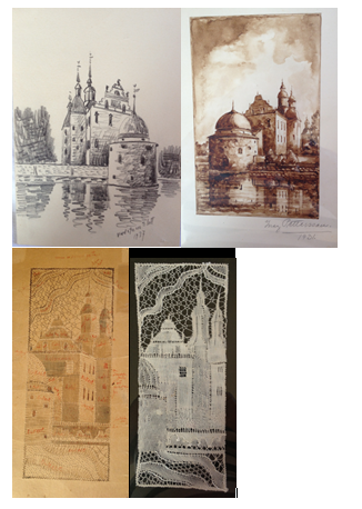 Tavlan finns dokumenterad i en artikel om spetsar i Svenska Journalen, nr 34, 1961. Av texten framgår det att det var ”Fia vid grinden” som knypplat slottet till affären.