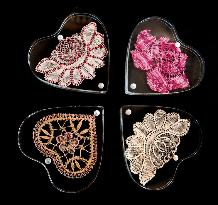 Här har vi Rosen, näckrosen och Vadstenahjärtat knypplade i färg och monterade i ramen Finlir http://www.ikea.com/se/sv/catalog/products/00075689/ från IKEA.