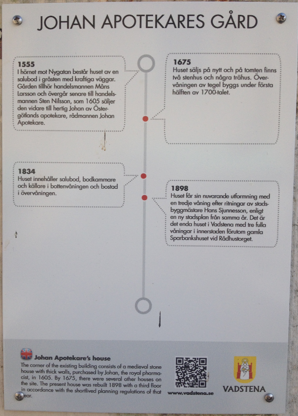 Mer om historiska byggnader i Vadstena hittar du på http://www.vadstena.se/Startsida/Uppleva-och-gora/Kultur/Kulturhistoriska-byggnader-i-Vadstena/