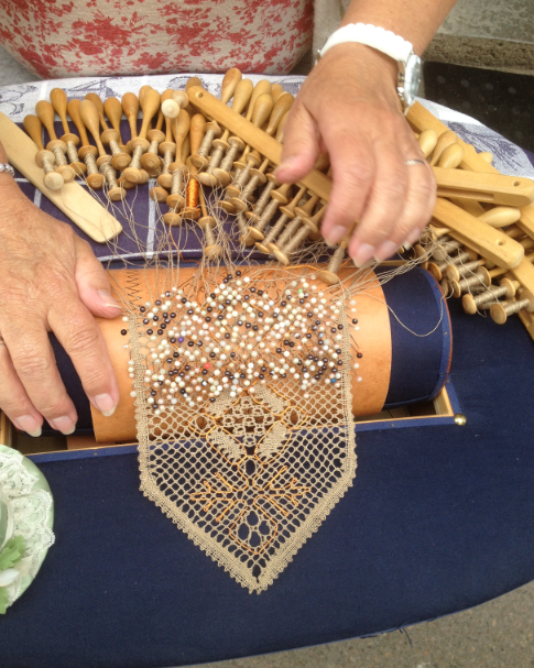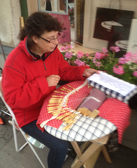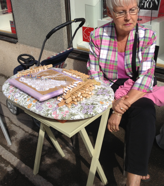 Här var jag fotograf och glömde fråga om namnet. Kerstin ?. Hur som helst så knypplas det mönster ur en bok från Finland.