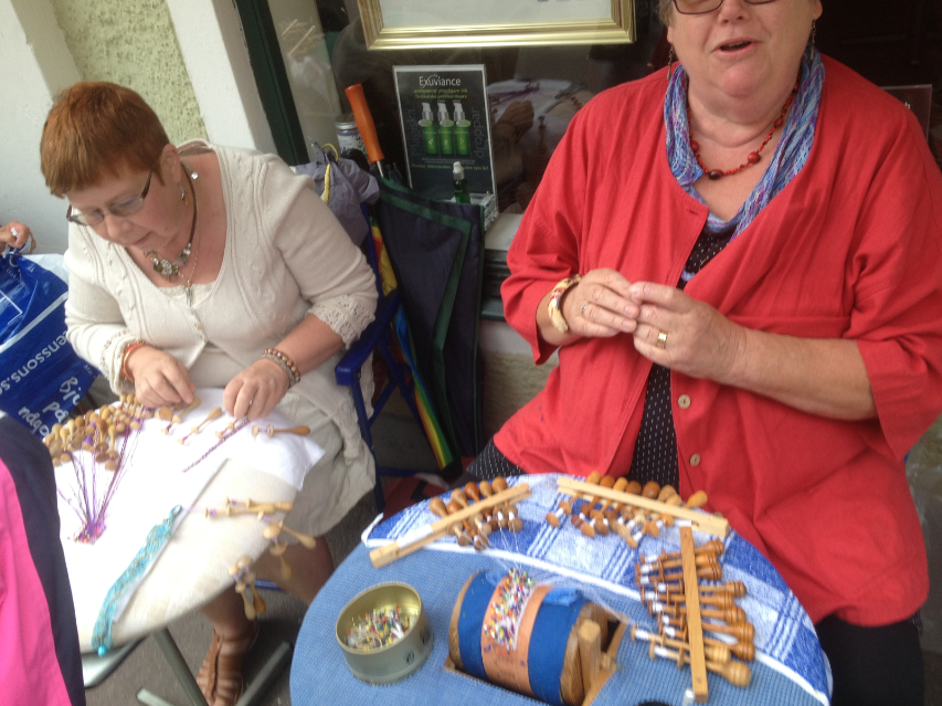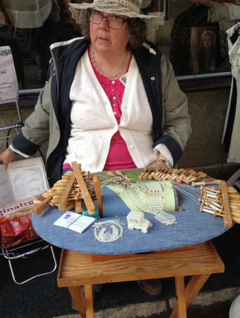 Här ser vi spåren av regnet! Det kanske inte var varmt att sitta och knyppla hela tiden. Men med tanke på hur många som flockades till runt Harriet så får vi hoppas att hon kunde hålla värmen!