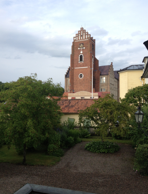 Det kom en störtskur till efter klockan fem men då hade alla redan hunnit packa ihop och stillheten var tillbaka på Storgatan. Klockan på Rödtornet visar 7. Mamma och jag har bänkat oss i köket och vilar fötterna efter en intensiv dag. Lasse står vid spisen. Nu ska det bli gott med mat!
