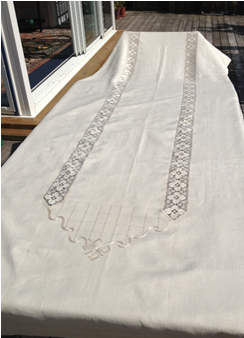 Denna duk mäter 105 gånger 285 centimeter.