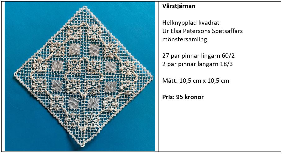 Butiken är den äldsta spetsaffären i sitt slag. Verksamheten grundades 1920 av Elsa Peterson och idag drivs den av hennes dotterdotter Karin Landtblom.