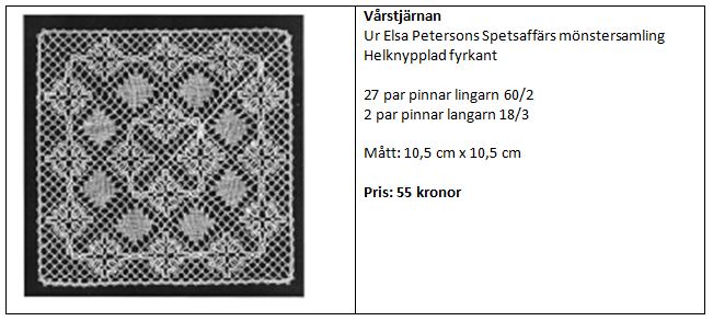 Butiken är den äldsta spetsaffären i sitt slag. Verksamheten grundades 1920 av Elsa Peterson och idag drivs den av hennes dotterdotter Karin Landtblom.