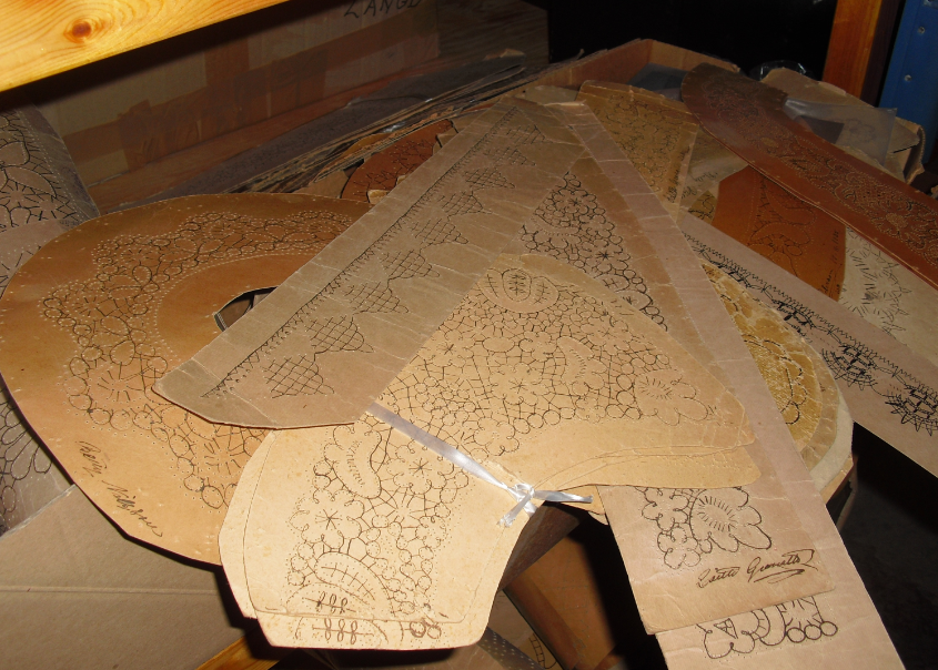 Varje gång jag kommer in i spetsaffärens mönsterkällare blir jag överväldigad av allt spännande som finns där. Jag tror inte att någon annan spetshandlare i Vadstena någonsin haft tillgång till så många mönster och utkast, här finns de i tusental. Det är som en skattkammare och man förundras över att det kan finnas så många vackra saker!
