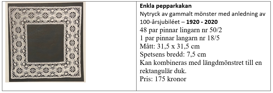 Butiken är den äldsta spetsaffären i sitt slag. Verksamheten grundades 1920 av Elsa Peterson och idag drivs den av hennes dotterdotter Karin Landtblom.