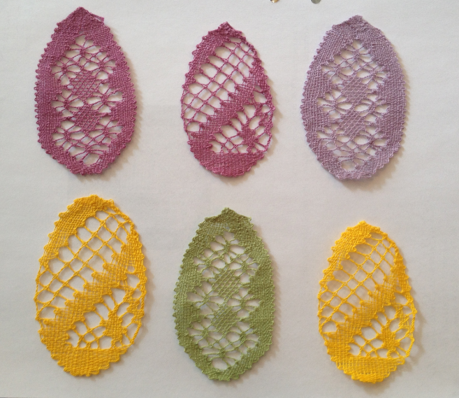 Det finns många fina kulörer att knyppla äggen i, varför inte välja några olika rosa färger.