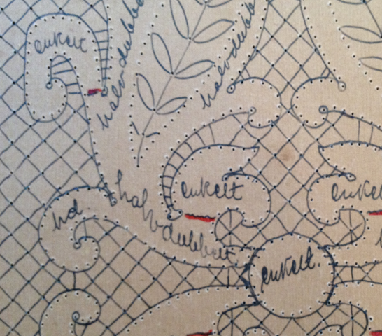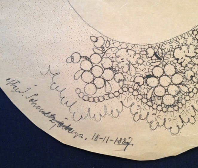 Detta är inte ett utkast utan ett mönster. Jag tar med det ändå för att visa ytterligare en detalj. Här kan vi nämligen se att mönstret är inspirerat av Irländsk knyppling.